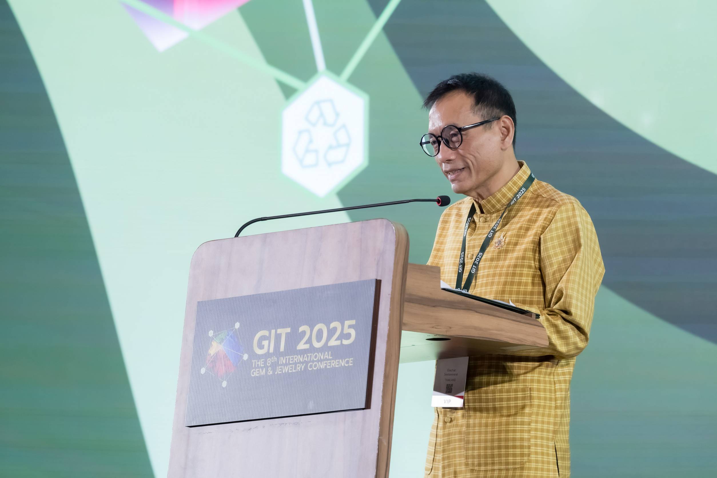 นายเอกฉัตร ศีตวรรัตน์ รองปลัดกระทรวงพาณิชย์ เป็นประธานเปิด “งานประชุมวิชาการนานาชาติด้านอัญมณีและเครื่องประดับ ครั้งที่ 8 (GIT 2025)” จัดโดยสถาบันวิจัยและพัฒนาอัญมณีและเครื่องประดับแห่งชาติ (องค์การมหาชน) หรือ GIT โดยครั้งนี้จัดขึ้นในธีม: Responsible Gem & Jewelry Supply Chain ตอกย้ำบทบาทของประเทศไทย ในฐานะศูนย์กลางทางวิชาการชั้นนำในสาขาอัญมณีและเครื่องประดับของภูมิภาค