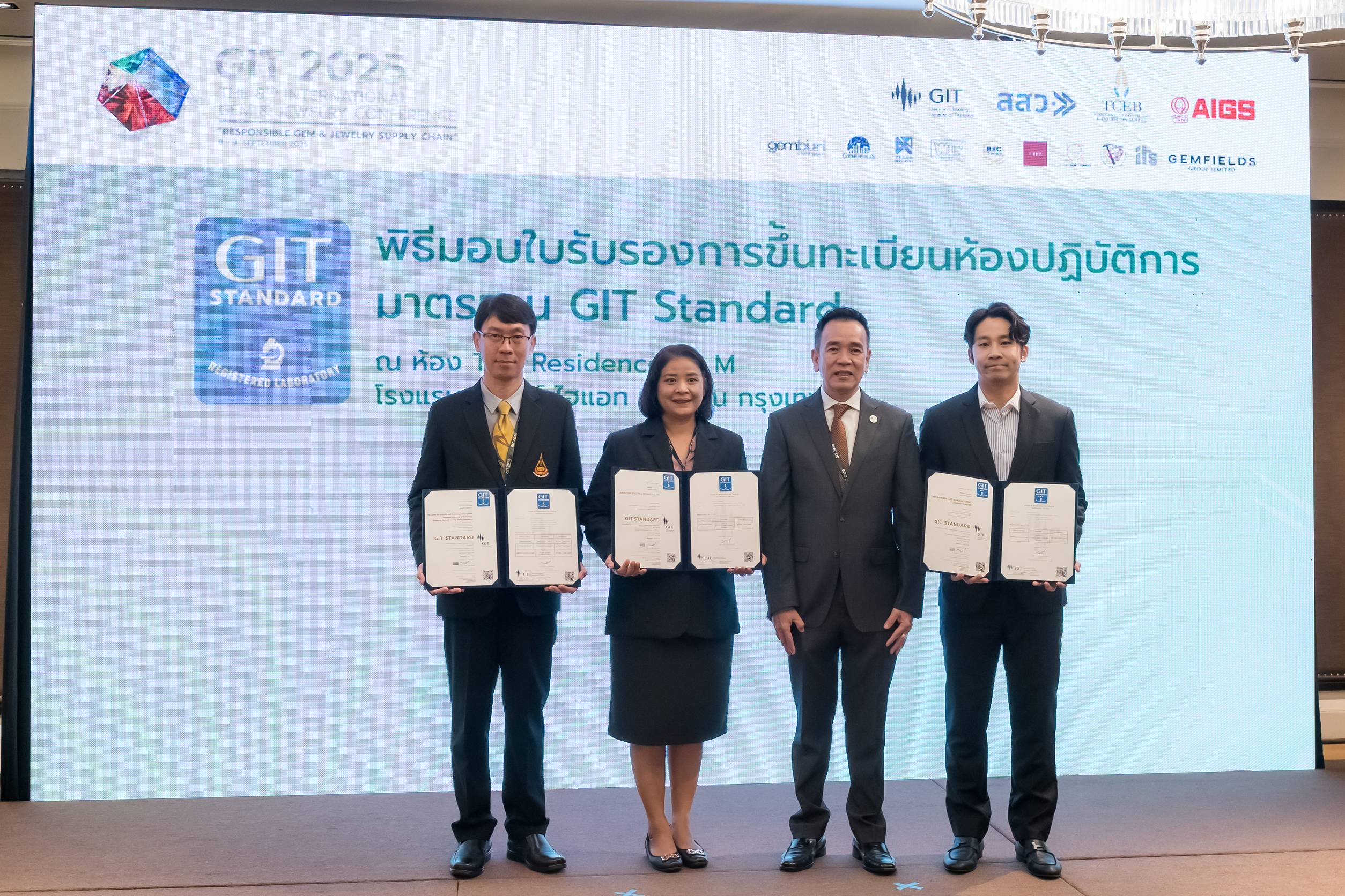 หวังประเทศไทยเป็นผู้นำทางความคิดและนวัตกรรมในชุมชนอัญมณีและเครื่องประดับระดับโลก พร้อมกันนี้ ในงานยังจัดให้มีพิธีมอบเกียรติบัตรผู้เข้าร่วมโครงการ “การส่งเสริมและยกระดับ SMEs ในอุตสาหกรรมอัญมณีและเครื่องประดับเข้าสู่มาตรฐานธรรมาภิบาล (Responsible Jewellery Council; RJC)” และพิธีมอบใบรับรองการขึ้นทะเบียนห้องปฏิบัติการมาตรฐาน GIT Standard อีกด้วย