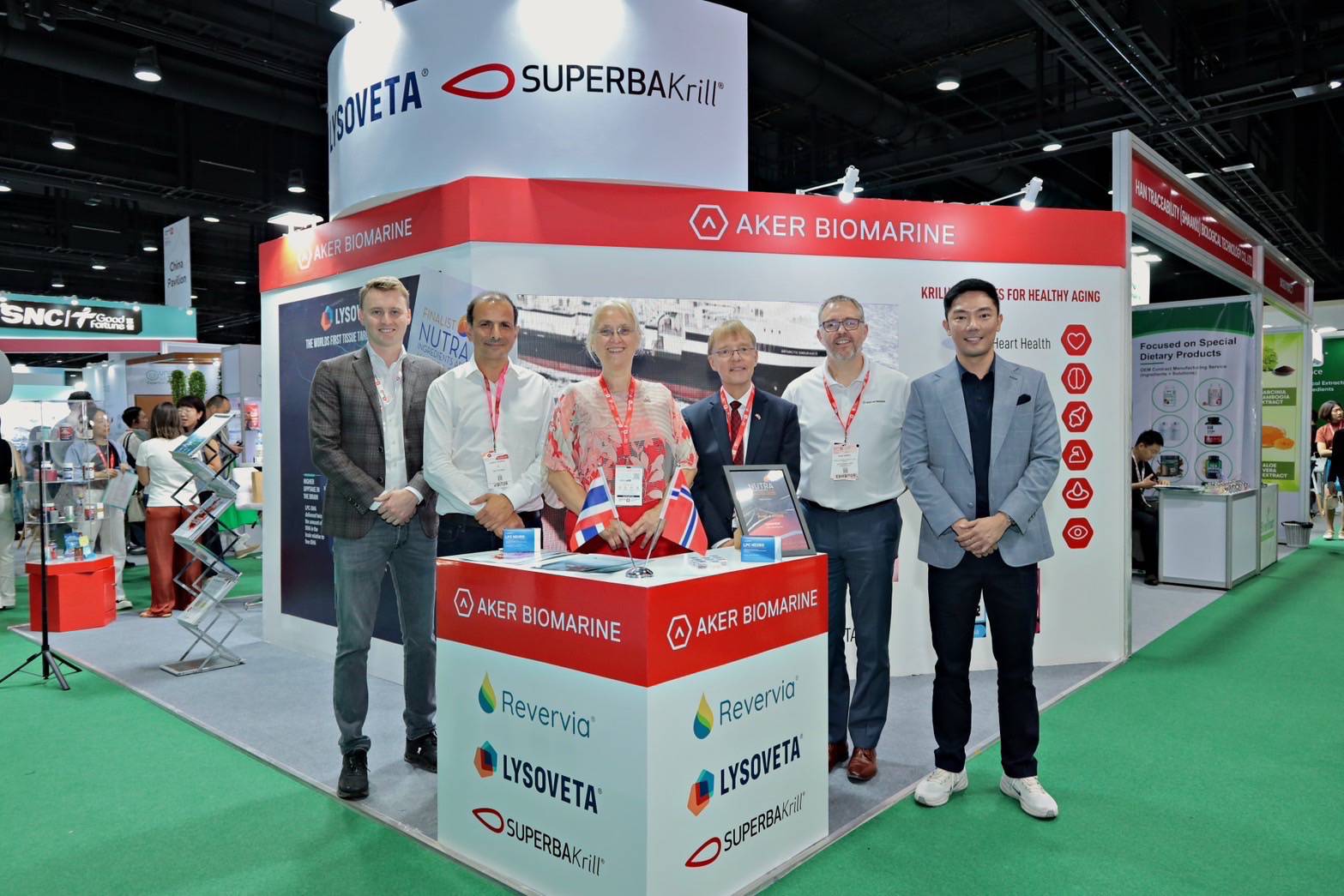 หนึ่งในผู้ร่วมจัดแสดงสินค้าที่โดดเด่นคือ บริษัท Aker BioMarine Human Ingredients AS ผู้จัดหาน้ำมันคริลล์ชั้นนำของโลก เจ้าของผลิตภัณฑ์ Superba Krill ซึ่งกลายเป็นมาตรฐานอ้างอิงด้านคุณภาพและความยั่งยืนในอุตสาหกรรม ทั้งนี้ บริษัทฯ มีงานวิจัยทางคลินิกมากกว่า 50 ฉบับที่ยืนยันถึงประโยชน์ของน้ำมันคริลล์ต่อสุขภาพในหลากหลายด้าน
