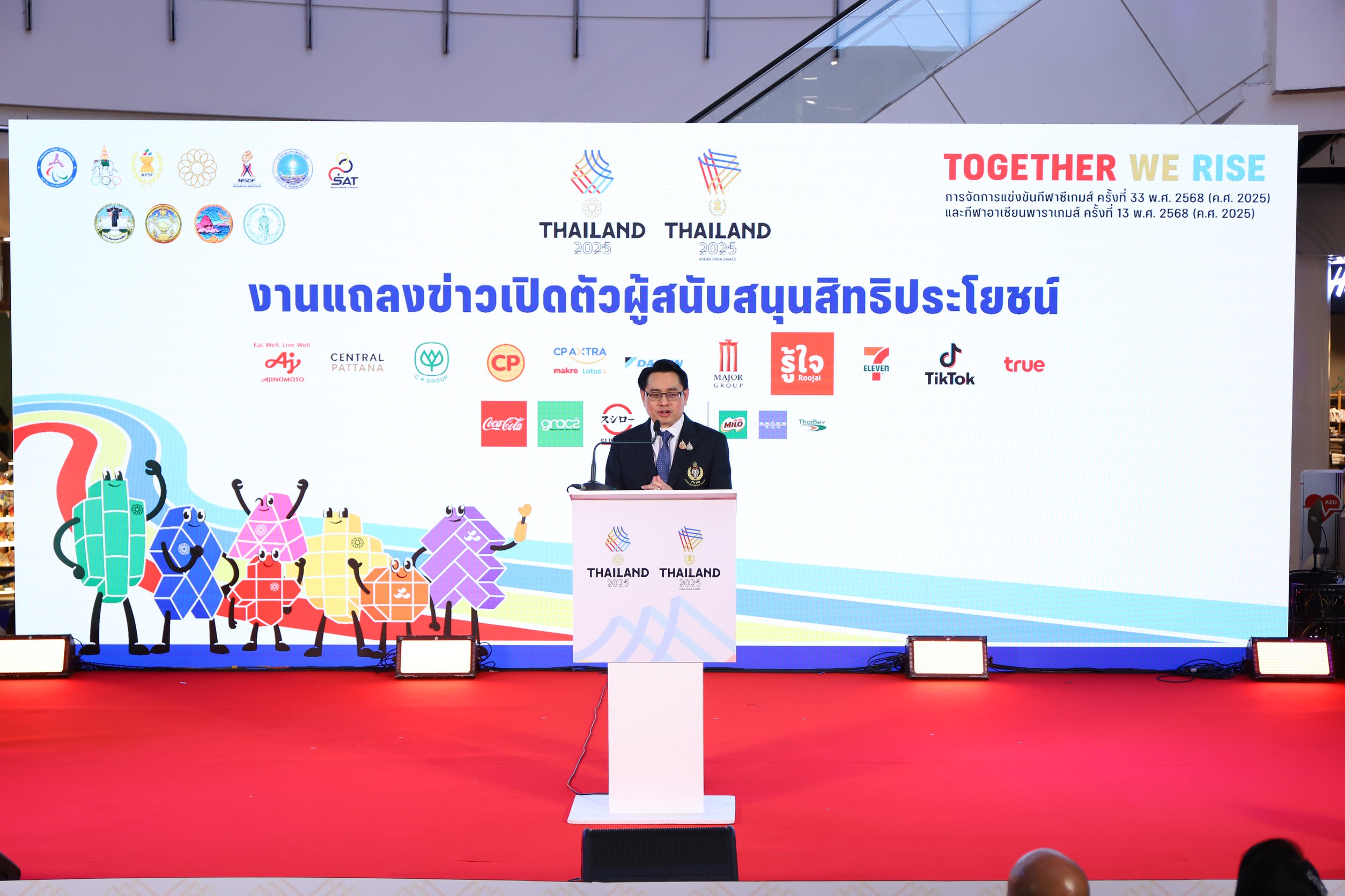 การกีฬาแห่งประเทศไทย (กกท.) จัดงาน “Together We Rise” การแถลงข่าวเปิดตัวผู้สนับสนุนสิทธิประโยชน์การแข่งขันกีฬาซีเกมส์ ครั้งที่ 33 และกีฬาอาเซียนพาราเกมส์ ครั้งที่ 13 อย่างเป็นทางการ ณ ลานเซ็นทรัลคอร์ท ชั้น 1 ศูนย์การค้าเซ็นทรัลเวิลด์ กรุงเทพฯ โดยมี ดร.ก้องศักด ยอดมณี ผู้ว่าการการกีฬาแห่งประเทศไทย เป็นประธานในพิธี