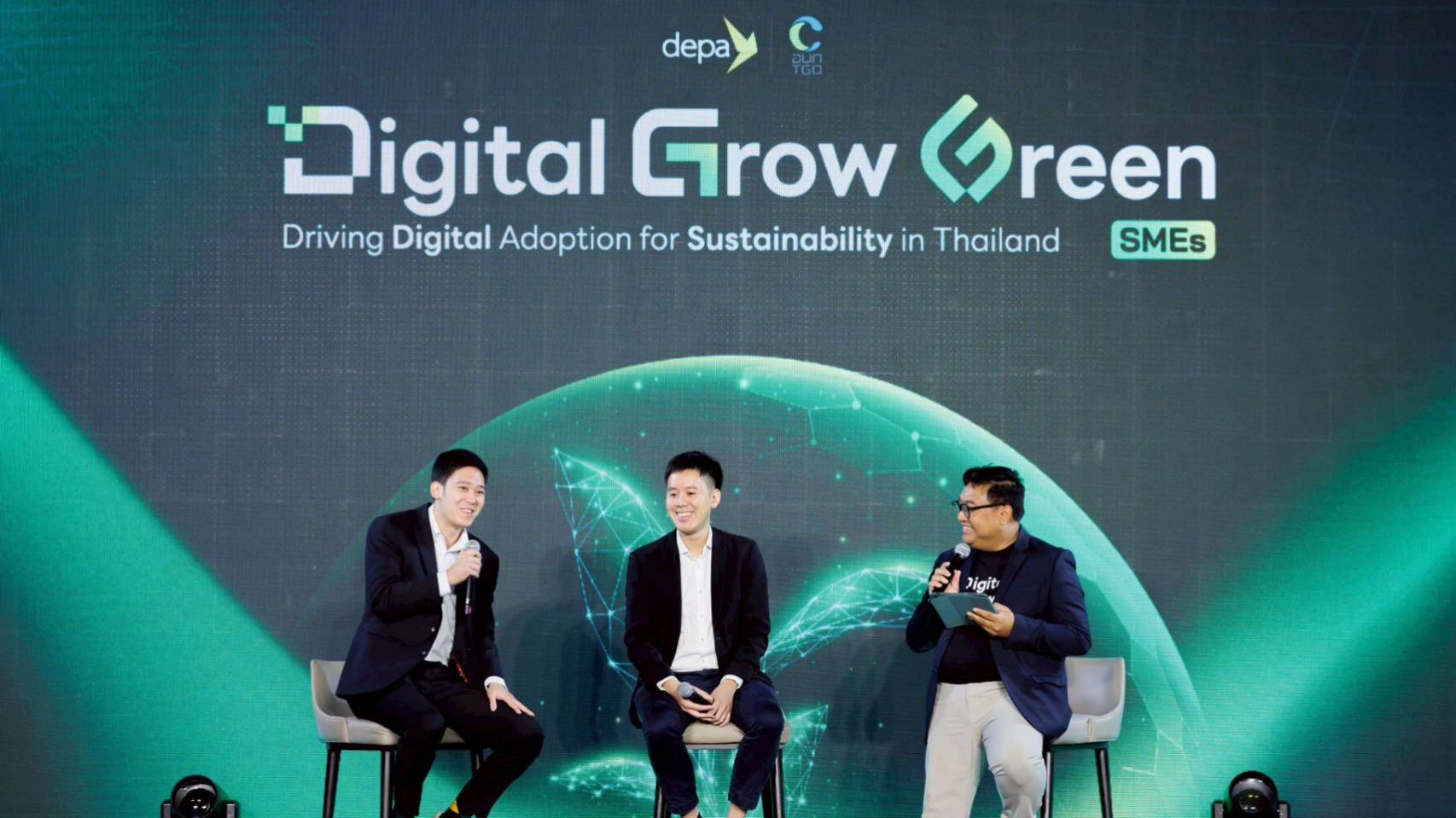 สำนักงานส่งเสริมเศรษฐกิจดิจิทัล หรือ ดีป้า ร่วมกับ องค์การบริหารจัดการก๊าซเรือนกระจก (องค์การมหาชน) หรือ อบก. แถลงข่าวเปิดตัวโครงการ Digital Grow Green ส่งเสริมให้เกิดการนำดิจิทัลโซลูชันมาประยุกต์ใช้บริหารจัดการคาร์บอนฟุตพรินต์ เพื่อลดการปล่อยลดก๊าซเรือนกระจก โดยได้รับเกียรติจาก ผศ.ดร.ณัฐพล นิมมานพัชรินทร์ ผู้อำนวยการใหญ่ ดีป้า และ นายธาดา วรุณโชติกุล ผู้จัดการสำนักรับรองธุรกิจคาร์บอนต่ำ องค์การบริหารจัดการก๊าซเรือนกระจก (องค์การมหาชน) เข้าร่วมภายในงาน