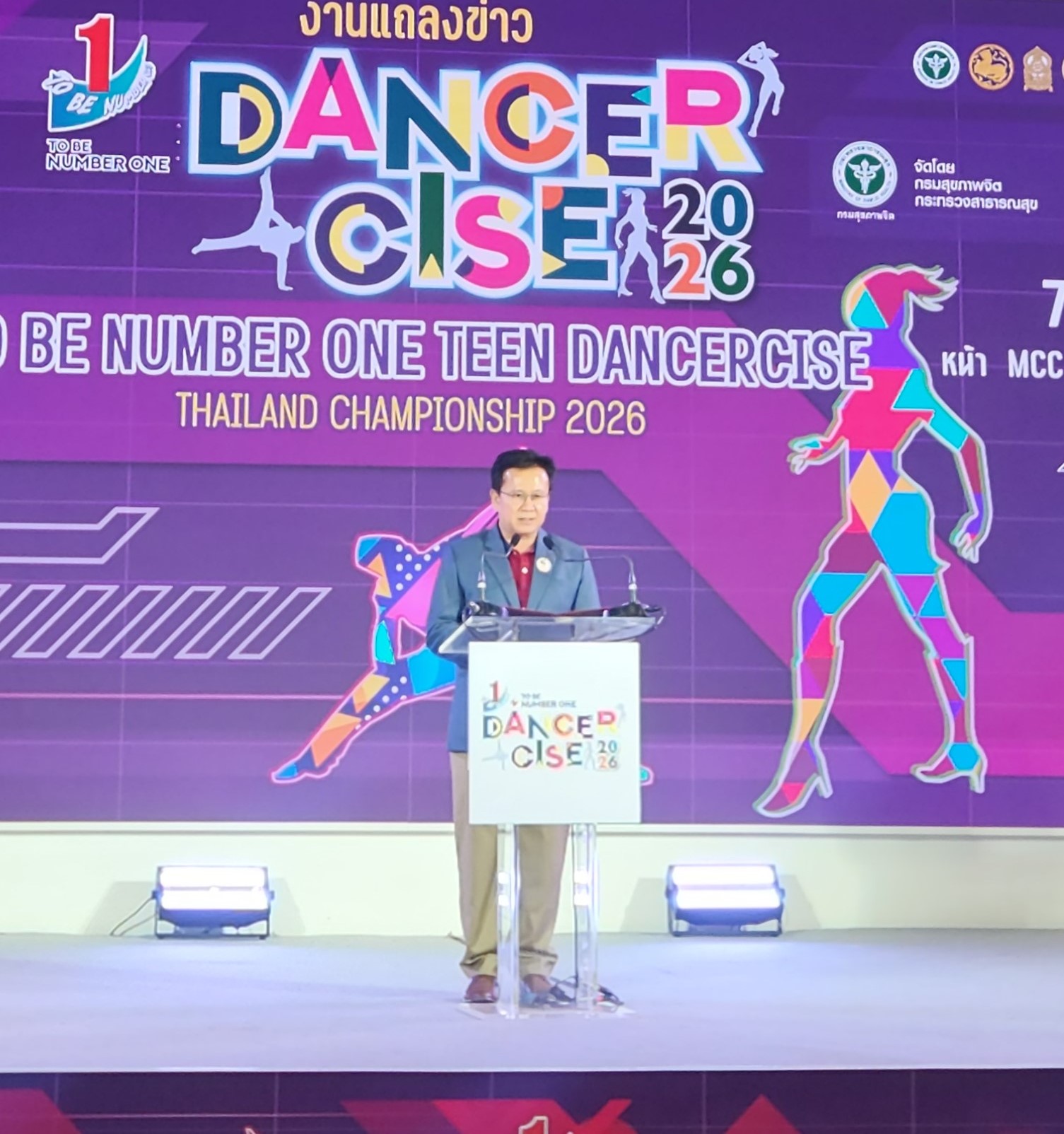 นายแพทย์จุมภฏ พรมสีดา รองอธิบดีกรมสุขภาพจิต กล่าว เปิดการแข่งขัน TO BE NUMBER ONE TEEN DANCERCISE THAILAND CHAMPIONSHIP 2026 ว่าในฐานะกรมสุขภาพจิต ได้รับพระกรุณาธิคุณมอบหมายจากทูลกระหม่อมหญิงอุบลรัตนราชกัญญา สิริวัฒนาพรรณวดี องค์ประธานโครงการTO BE NUMBER ONE ให้ทำหน้าที่เลขานุการโครงการ TO BE NUMBER ONE ตั้งแต่ ปี 2545