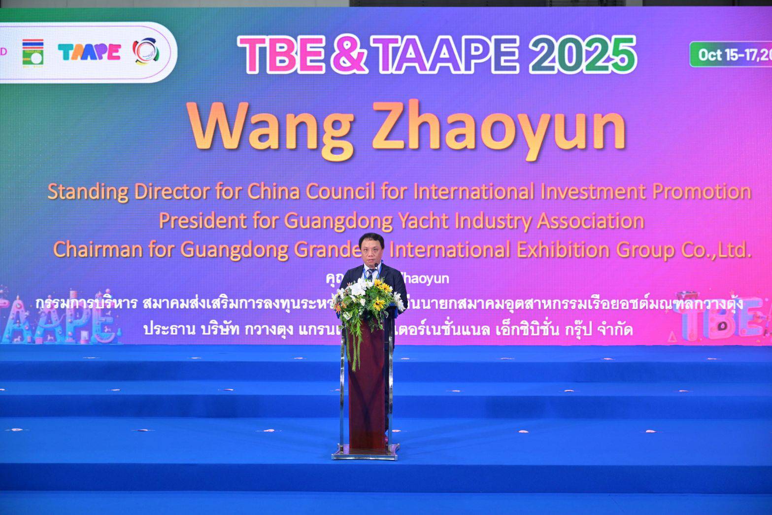 นายหวัง เจ้าหยุน ประธานบริหาร บริษัท กวางตง แกรนเดอร์ เอ็กซิบิชั่น กรุ๊ป กล่าวถึงวาระครบรอบ 50 ปีความสัมพันธ์ทางการทูตไทย–จีน การจัดงาน TAAPE 2025 และ TBE 2025 ได้รับการรับรองอย่างเป็นทางการให้เป็นส่วนหนึ่งของการเฉลิมฉลองครบรอบ 50 ปีความสัมพันธ์ไทย–จีน ถือเป็นความร่วมมือทางเศรษฐกิจและวัฒนธรรม รวมทั้งแสดงถึงความมุ่งมั่นที่จะเสริมสร้างมิตรภาพไทย–จีนผ่านพลังของอุตสาหกรรมด้วยมูลค่าการค้าจีน–ไทยเติบโตอย่างต่อเนื่อง