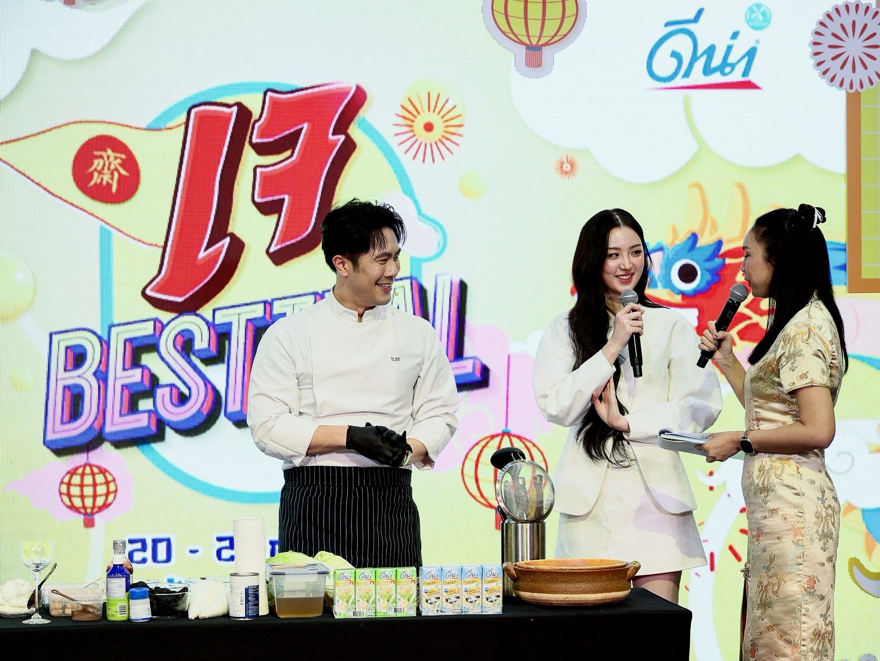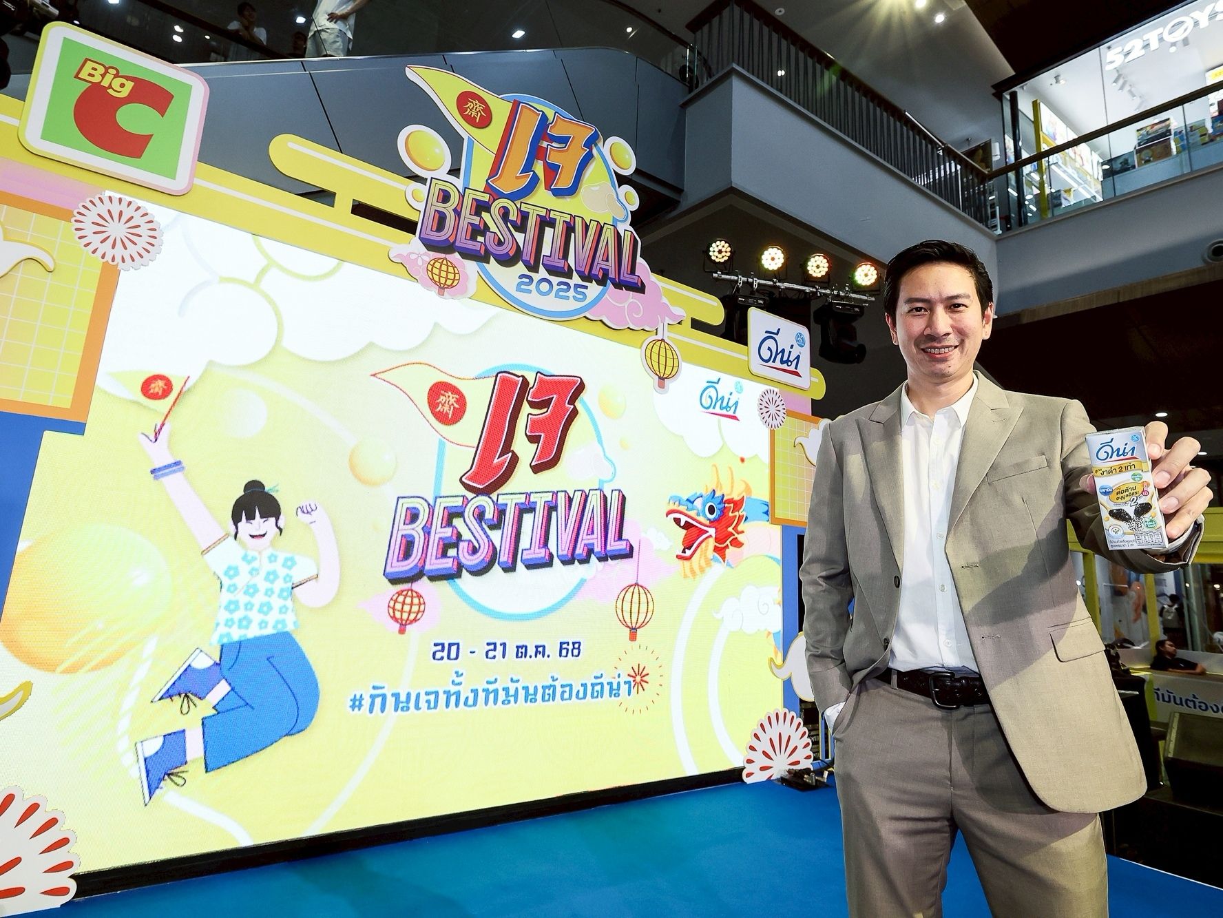 พร้อมเมนูเจจากเชฟชื่อดัง รังสรรค์เมนูสุดพิเศษด้วยนมถั่วเหลืองดีน่า เสิร์ฟให้ชิมตลอดทั้งงาน และการ Collab กับร้านชาชื่อดังอย่าง เจี๊ยนชา นอกจากนี้ภายในงานยังได้รับเกียรติจาก คุณภาสินี แซ่ตั้ง Senior Vice President Dryfood บริษัท บิ๊กซี ซูเปอร์เซ็นเตอร์ จำกัด (มหาชน) และ คุณสุรชัย จิระมงคลศิริ ผู้อำนวยการฝ่ายขายโมเดิร์นเทรด บริษัท ดัชมิลล์ จำกัด ร่วมเปิดงานเจ BESTIVAL 2025 กินเจทั้งทีมันต้องดีน่า