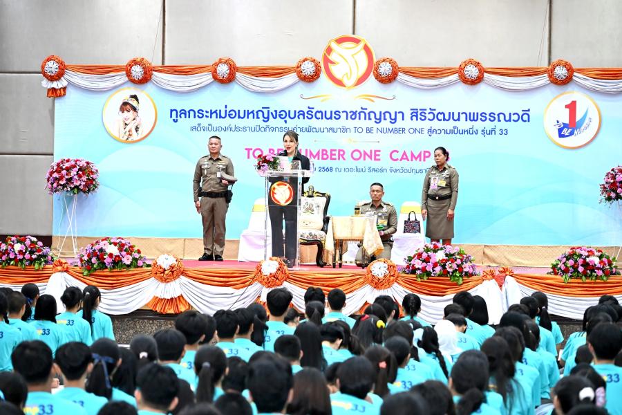 ทูลกระหม่อมหญิงอุบลรัตนราชกัญญา สิริวัฒนาพรรณวดี องค์ประธานโครงการ TO BE NUMBER ONE เสด็จพระราชทานเกียรติบัตรแก่เยาวชนสมาชิก “ค่ายพัฒนาสมาชิก TO BE NUMBER ONE สู่ความเป็นหนึ่ง” รุ่นที่ 33 โดยมีนายแพทย์สมฤกษ์ จึงสมาน ปลัดกระทรวงสาธารณสุข, นายแพทย์กิตติศักดิ์ อักษรวงศ์ อธิบดีกรมสุขภาพจิต ,หม่อมหลวงยุพดี ศิริวรรณ ที่ปรึกษาโครงการ TO BE NUMBER ONE และเลขาธิการมูลนิธิโครงการ TO BE NUMBER ONE