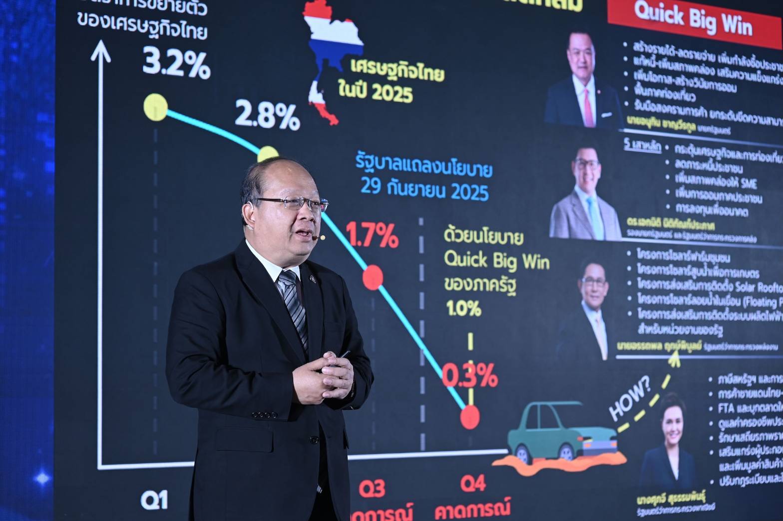 นอกจากนี้ ภายในงานเหล่าผู้นำองค์กรชั้นนำจากหลากหลายภาคเศรษฐกิจของประเทศ ยังได้ร่วมบรรยายพิเศษหัวข้อ “สัญญาณเศรษฐกิจโลก–ไทย: อ่านเกมวิกฤตการเมือง พลิกโอกาสอนาคตเศรษฐกิจไทย”