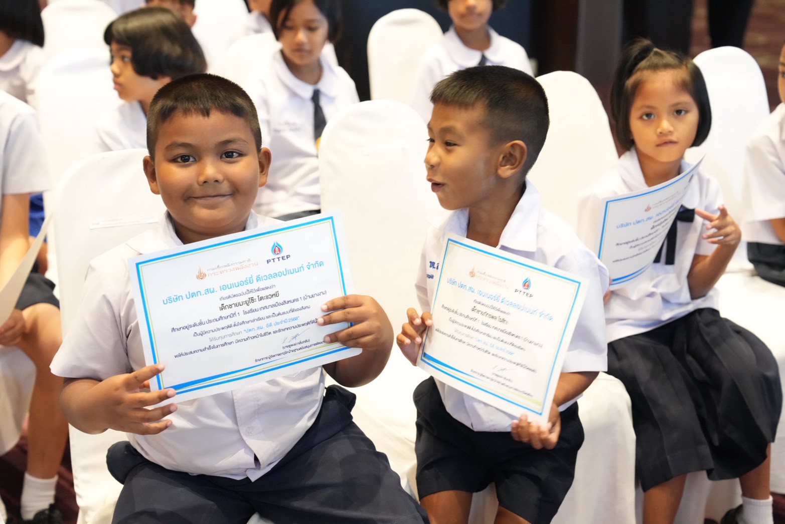 ด้านนายชูพงษ์ กลั่นกลีบ รักษาการผู้จัดการอาวุโส ฝ่ายฐานสนับสนุนการพัฒนาปิโตรเลียม บริษัท ปตท.สำรวจและผลิตปิโตรเลียม จำกัด (มหาชน) หรือ ปตท.สผ. กล่าวในนามตัวแทนของ ปตท.สผ.อีดี ว่า โครงการทุนการศึกษาสะท้อนความรับผิดชอบต่อสังคมของ ปตท.สผ. อีดี