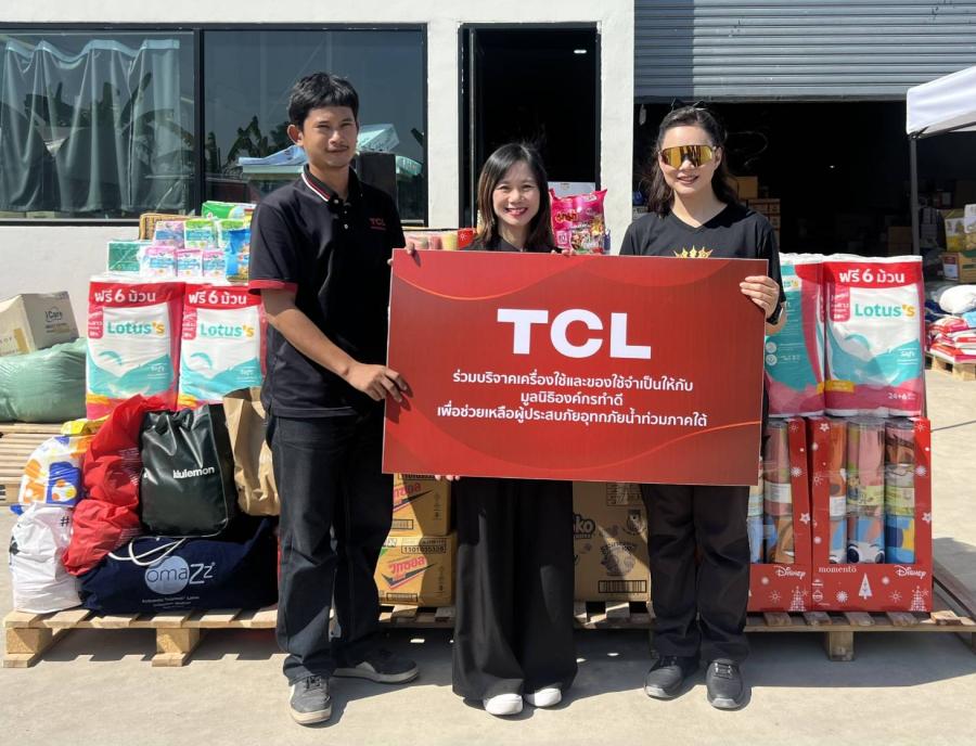 นายแกรี่ จ้าว กรรมการผู้จัดการ พร้อมด้วยพนักงาน บริษัท ทีซีแอล อิเล็กทรอนิกส์ (ไทยแลนด์) จำกัด กล่าวว่า บริษัทฯ ได้มอบเครื่องใช้จำเป็น ให้กับมูลนิธิองค์กรทำดี และ มูลนิธิเนชั่นปันน้ำใจ วันจันทร์ที่ 1 ธันวาคม 2568 ที่ผ่านมา เพื่อส่งต่อถึงมือผู้ประสบภัยอย่างรวดเร็ว เป็นระบบ และครอบคลุมพื้นที่ที่ได้รับความเดือดร้อนมากที่สุด