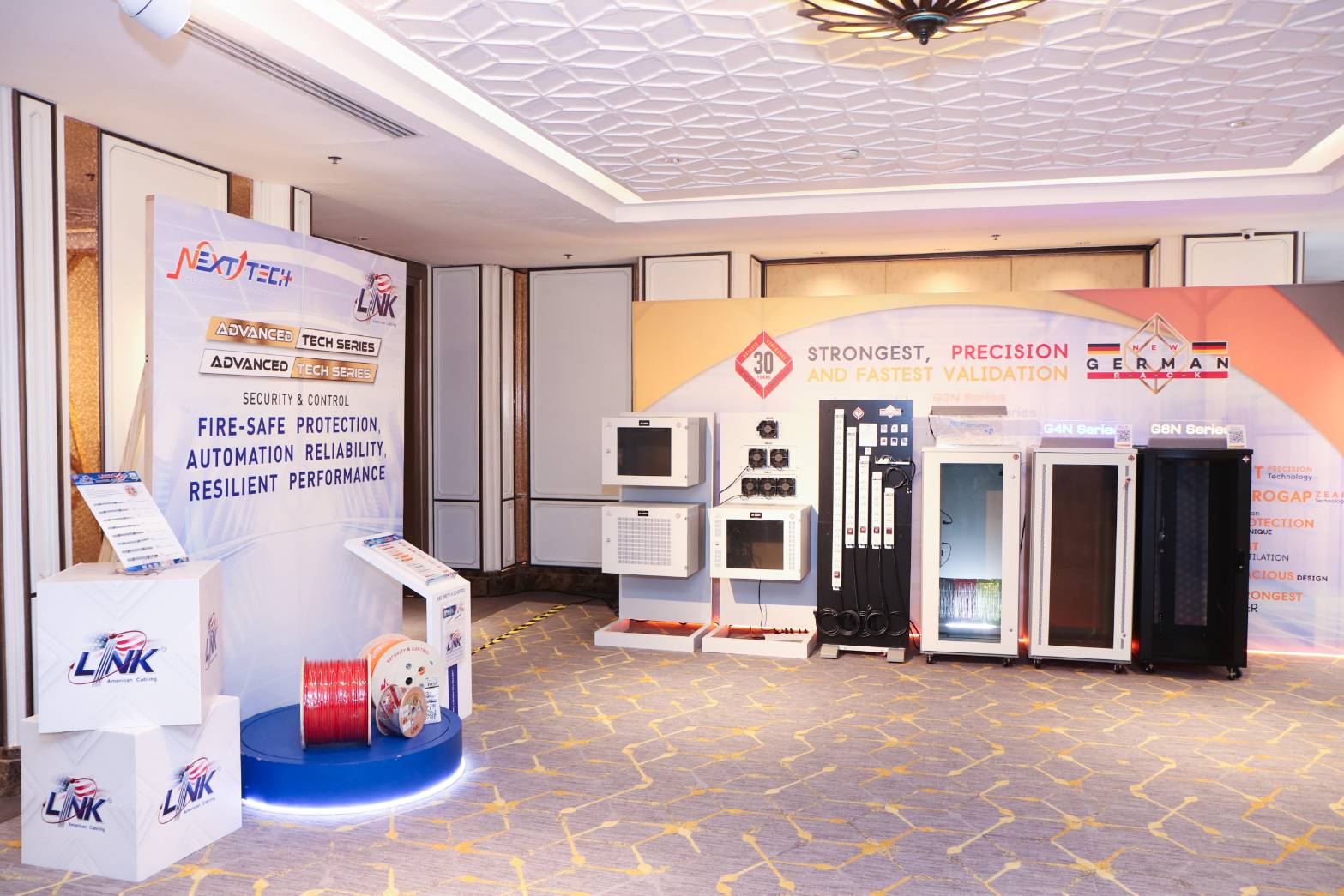 ไปจนถึงอุปกรณ์ เครื่องมือ ที่จะมาตอบโจทย์โครงสร้าง และรองรับการทำงานของเทคโนโลยีขั้นสูง เช่น AI, CLOUD COMPUTING, BIG DATA เป็นต้น โดย LINK AMERICAN CABLING และ GERMAN RACK ได้นำประสบการณ์ และความเชี่ยวชาญจากการพัฒนาโซลูชันที่เหนือกว่าในระดับอุตสาหกรรม มาถ่ายทอดเป็นมุมมองเชิงกลยุทธ์ที่เชื่อมโยงเทคโนโลยีกับการเติบโตทางเศรษฐกิจดิจิทัล