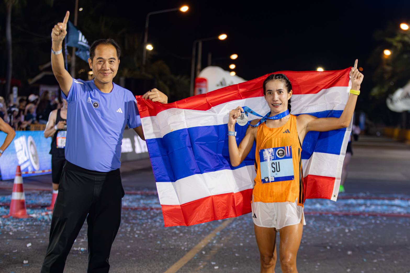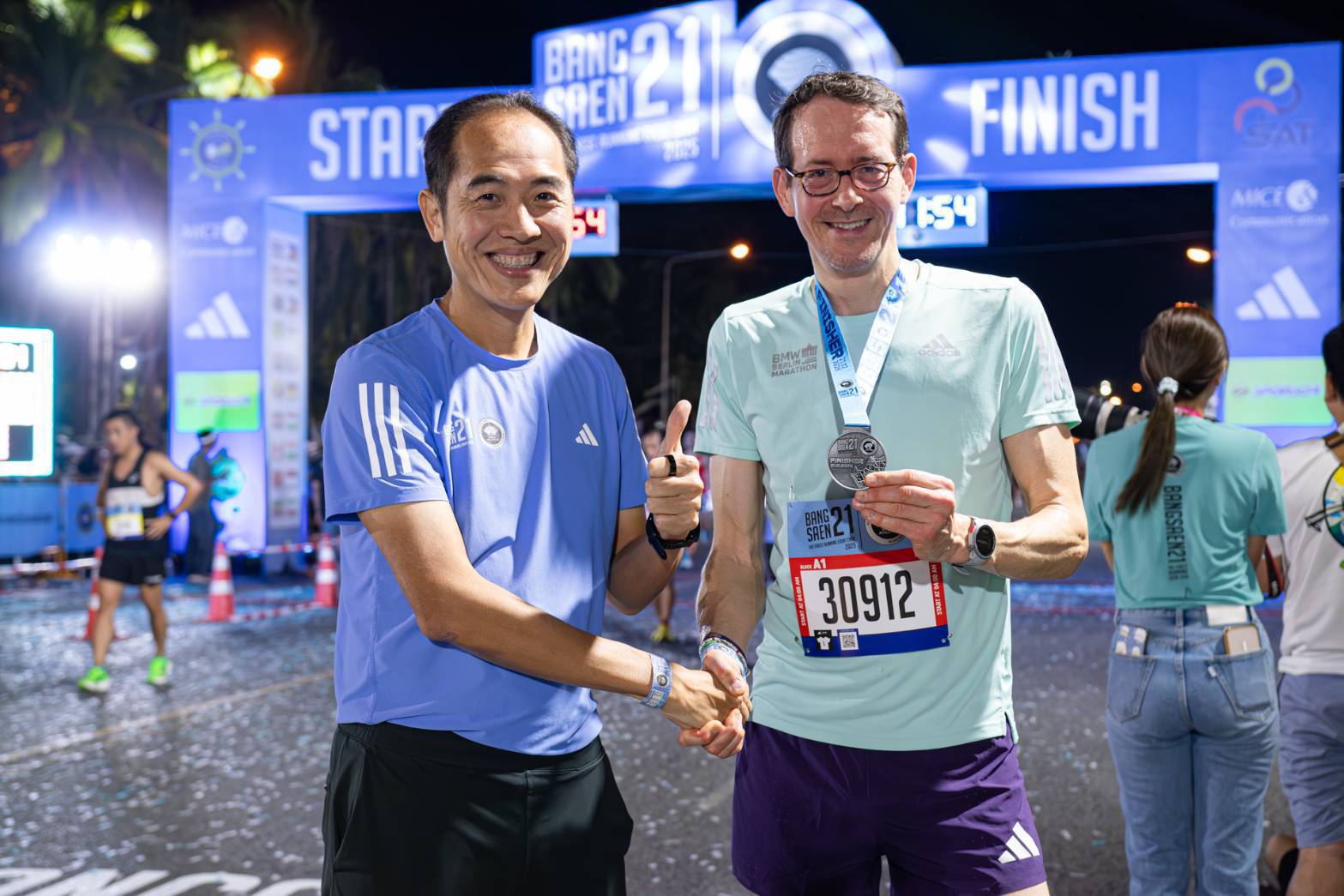 “New PB” ผมได้ยินคำนี้เต็มไปหมดเลยในช่วงครึ่งชั่วโมงแรกหลังวิ่งเข้าเส้นชัย รวมถึงรางวัล Top100 ปีนี้ ก็วิ่งได้เร็วขึ้นทั้งชายและหญิง และปีนี้เราได้ Adidas ที่มามอบรางวัลพิเศษ รองเท้าวิ่ง Adizero Adios Pro 4 ให้กับ “Top 50 ADIDAS Fastest Finisher” สำหรับนักวิ่งไทยชายและหญิงที่ใส่รองเท้า adidas เข้าเส้นชัย 50 คนแรก ยิ่งสร้างความตื่นเต้นให้กับนักวิ่งทั้งไทย และต่างชาติ อย่างมาก” นายรัฐ กล่าว