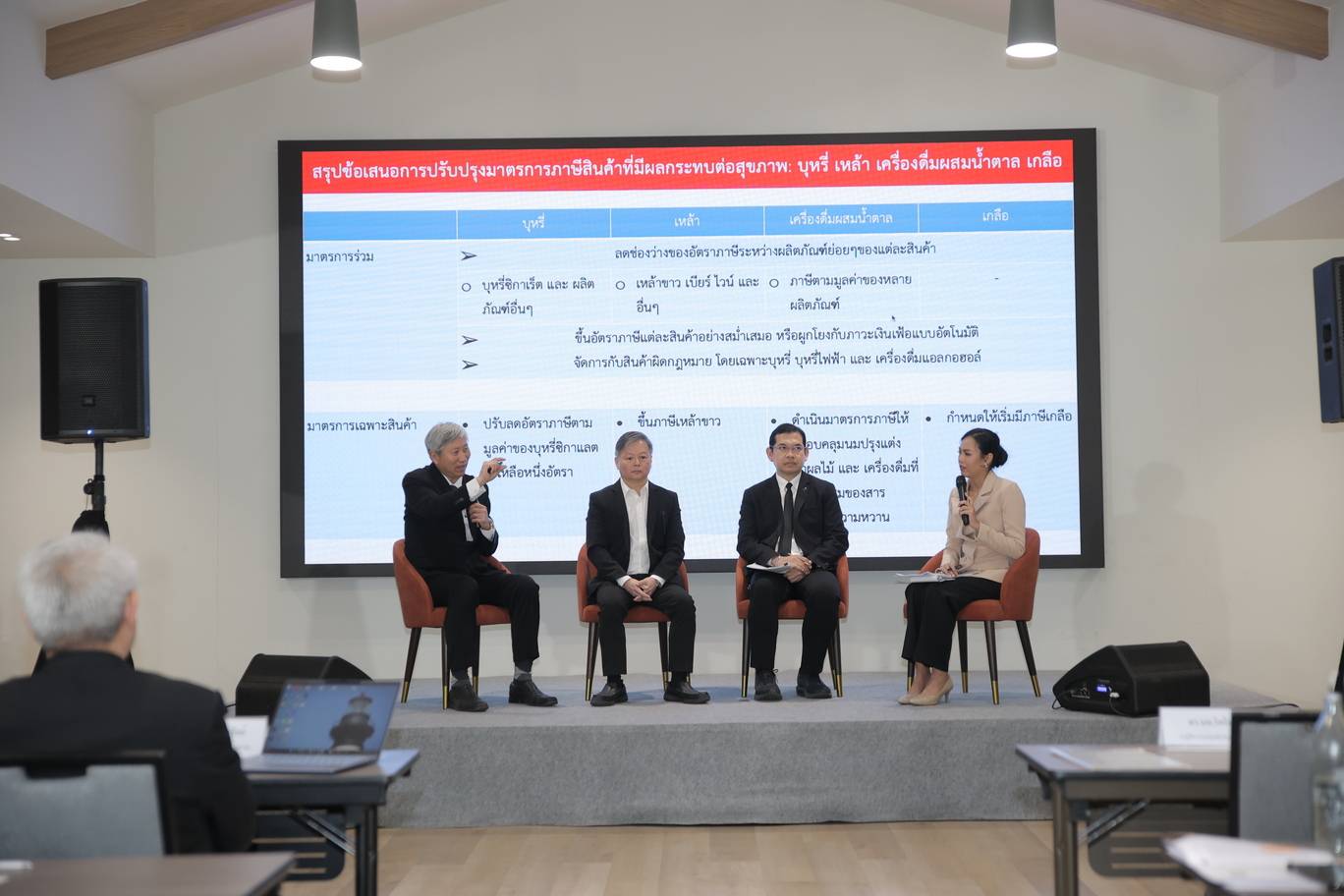 ภาคีสุขภาพจัดเวทีวิชาการและสื่อสารสาธารณะ เรื่อง ข้อเสนอการปรับปรุงมาตรการภาษีสินค้าที่มีผลกระทบต่อสุขภาพทั้งสี่ชนิด ได้แก่ บุหรี่ เหล้า น้ำตาล และเกลือ