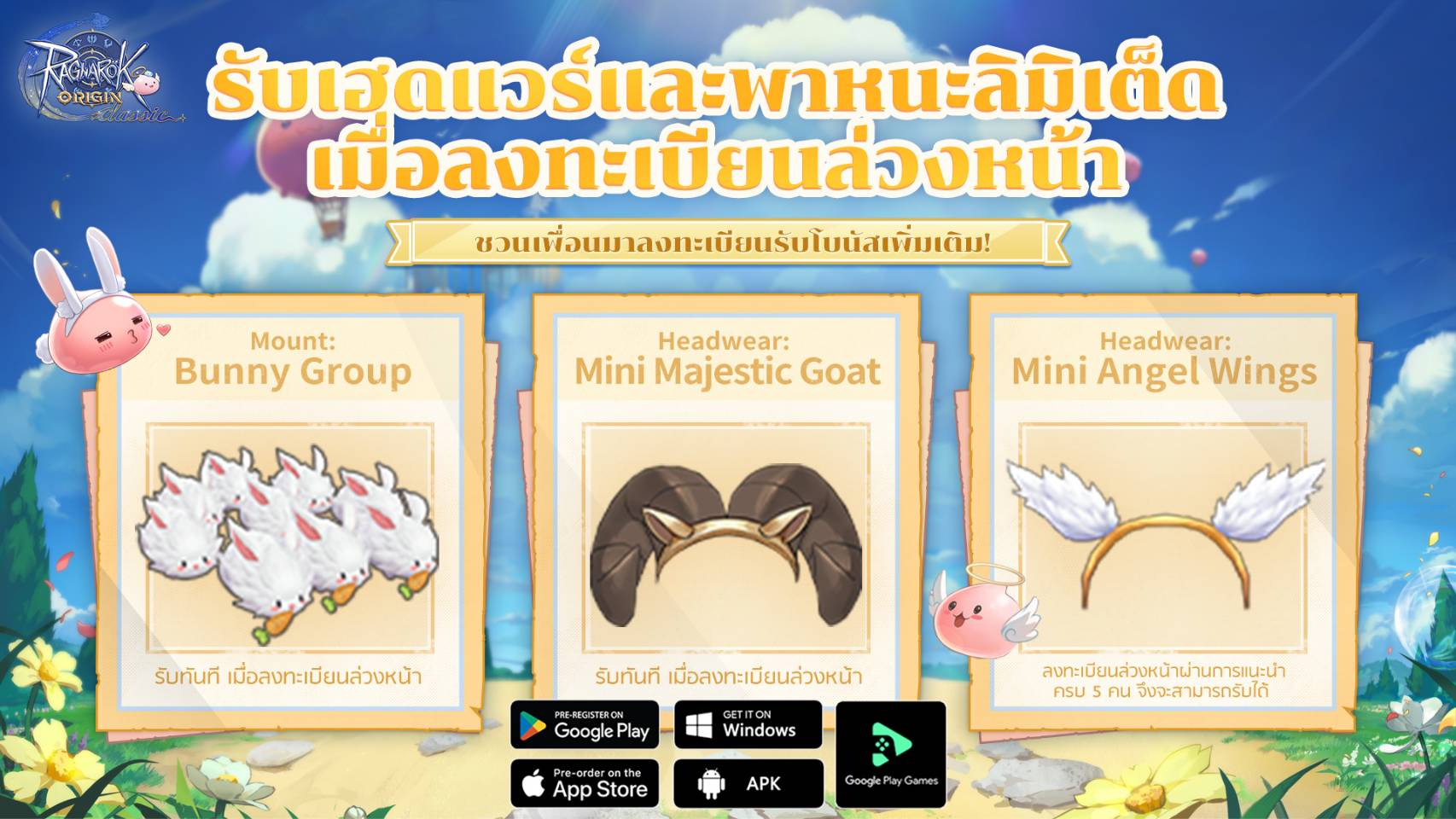 การลงทะเบียนล่วงหน้าสำหรับ Ragnarok Origin Classic ได้เริ่มขึ้นแล้ว ขอเชิญชวนทุกท่านเข้าร่วมการผจญภัยอย่างแท้จริงในครั้งนี้