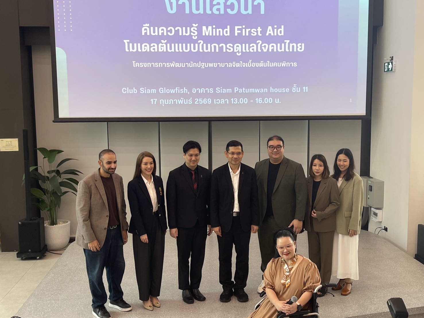 สถาบันวิชาการเพื่อความยั่งยืนทางสุขภาพจิต (TIMS) ร่วมกับสำนักงานกองทุนสนับสนุนการสร้างเสริมสุขภาพ (สสส.) จัดงานแถลงข่าวคืนความรู้โครงการ “การพัฒนาอาสาสมัครปฐมพยาบาลใจเบื้องต้นโดยคนพิการ (Mind First Aid)” ณ Club Siam Glowfish เพื่อเผยแพร่ความสำเร็จในการพัฒนาหลักสูตรและสร้างระบบนิเวศสุขภาพจิตที่เข้มแข็งผ่านกระบวนการรับฟังอย่างมีคุณภาพ