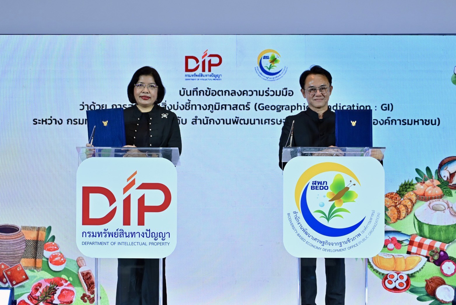 ในโอกาสเดียวกันนี้ กรมทรัพย์สินทางปัญญาได้ประกาศความร่วมมือกับ 2 หน่วยงานพันธมิตรสำคัญ ได้แก่ สำนักงานพัฒนาเศรษฐกิจจากฐานชีวภาพ (องค์การมหาชน) หรือ BEDO และ บริษัท ไปรษณีย์ไทย จำกัด ผ่านการลงนามบันทึกข้อตกลงความร่วมมือ (MOU) ร่วมกัน เพื่อส่งเสริมสินค้า GI อย่างเป็นระบบและครบวงจร