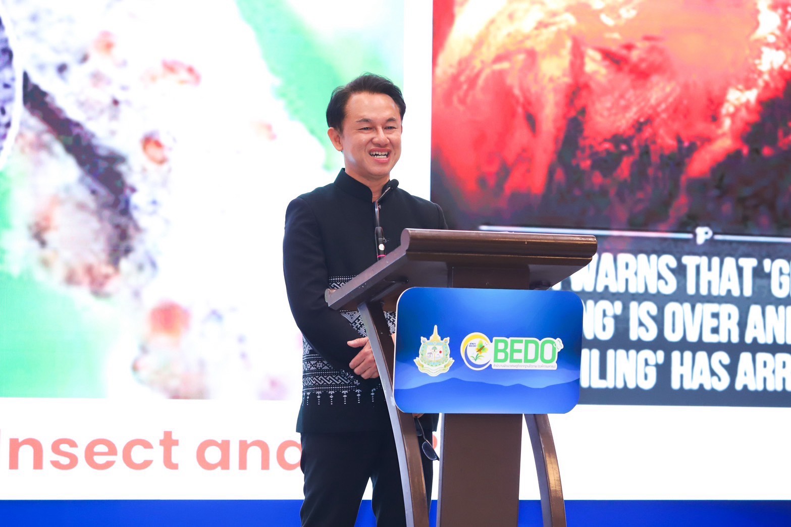ด้าน ดร.ธนิต ชังถาวร ผู้อำนวยการ BEDO กล่าวในการบรรยายพิเศษว่า โลกกำลังเผชิญ 3 วิกฤตสำคัญ ได้แก่ การเปลี่ยนแปลงสภาพภูมิอากาศ ปัญหาฝุ่น PM2.5 และการสูญเสียความหลากหลายทางชีวภาพ ซึ่งล้วนส่งผลกระทบโดยตรงต่อระบบเศรษฐกิจ