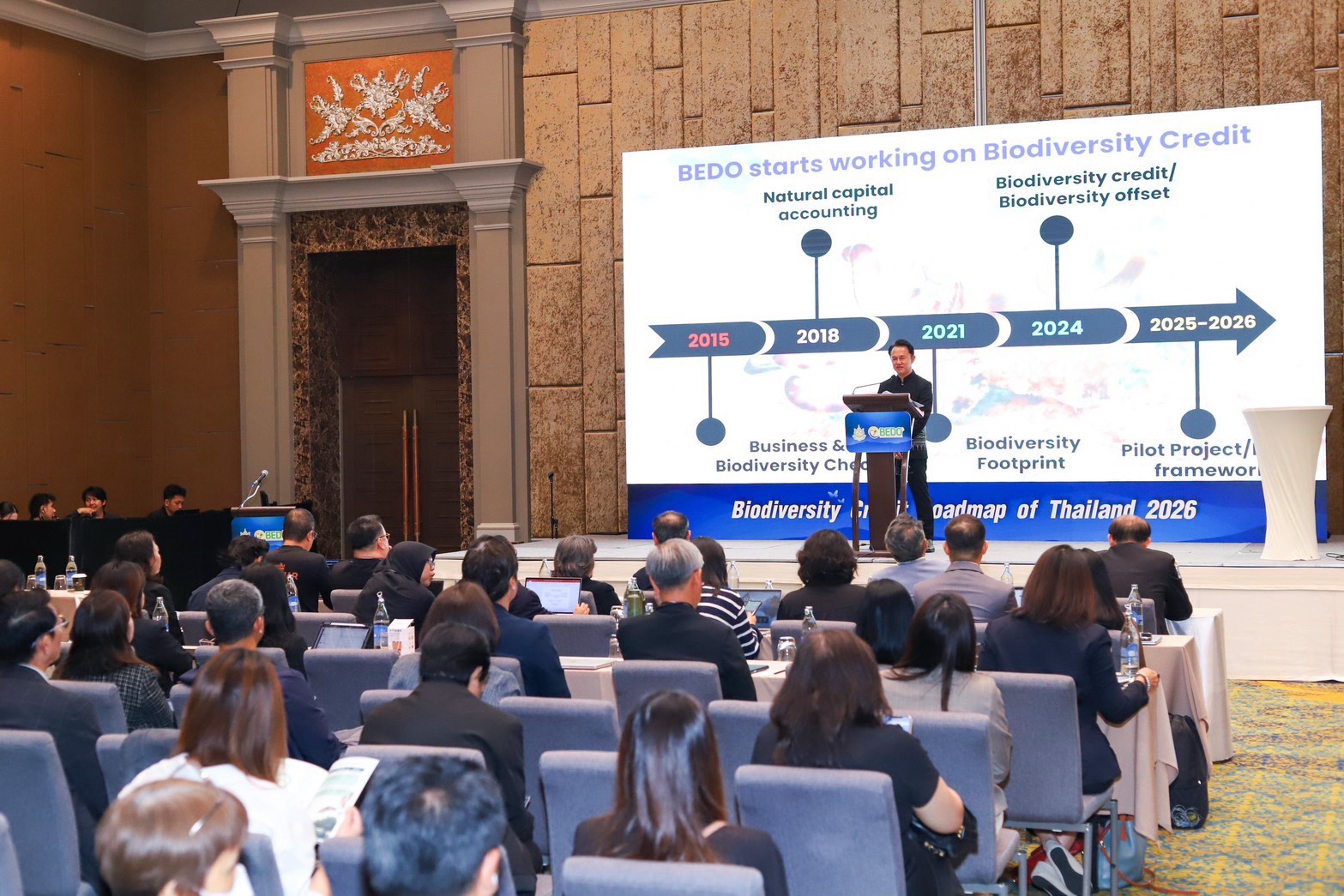 สำนักงานพัฒนาเศรษฐกิจจากฐานชีวภาพ (องค์การมหาชน) หรือ BEDO จัดการประชุมเชิงปฏิบัติการ “Biodiversity Credit Roadmap of Thailand” ระหว่างวันที่ 26–28 มีนาคม 2569 ณ โรงแรมเดอะเบอร์เคลีย์ ประตูน้ำกรุงเทพมหานคร เพื่อผลักดันการพัฒนากลไกทางการเงินด้านความหลากหลายทางชีวภาพของประเทศไทยให้สอดคล้องกับกรอบความร่วมมือระหว่างประเทศ