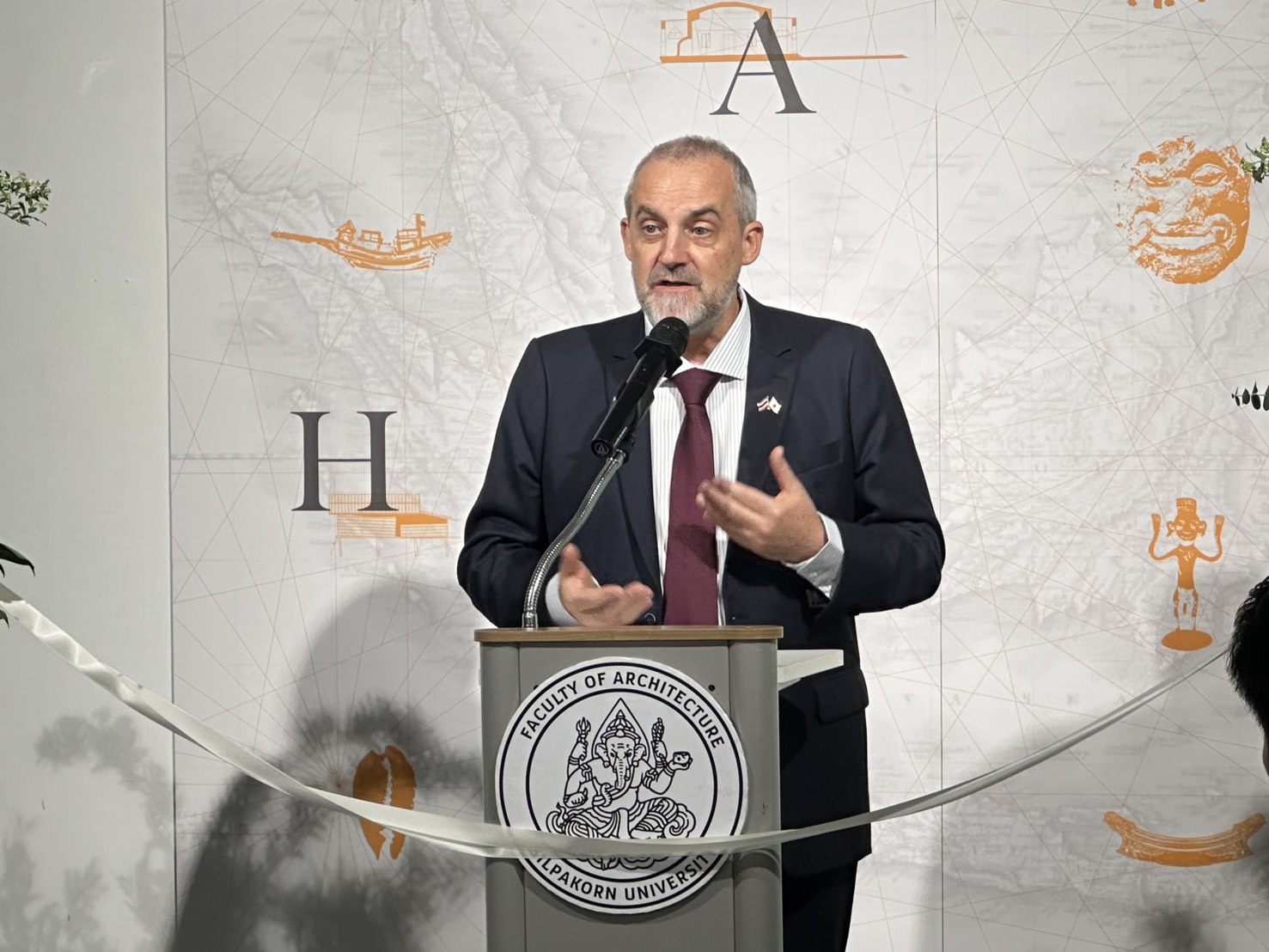 ศาสตราจารย์ ดร. ธนเศรษฐ์ ง้าวหิรัญพัฒน์ อธิการบดีมหาวิทยาลัยศิลปากร กล่าวว่า นิทรรศการครั้งนี้เป็นผลลัพธ์ที่จับต้องได้จากความร่วมมืออย่างทุ่มเทมาหลายปีระหว่างคณาจารย์ นักวิจัย และนักศึกษาของมหาวิทยาลัยศิลปากร กับนักวิจัยและทีมสำรวจจากศูนย์ศึกษาเอเชียตะวันออกเฉียงใต้ มหาวิทยาลัยเกียวโต ที่ลงพื้นที่ภาคสนามในมัลดีฟส์ อินโดนีเซีย และไทย โดยการดำเนินงานในประเทศไทยเกิดขึ้นได้จากบันทึกความเข้าใจที่ทั้งสองสถาบันได้ลงนามร่วมกัน