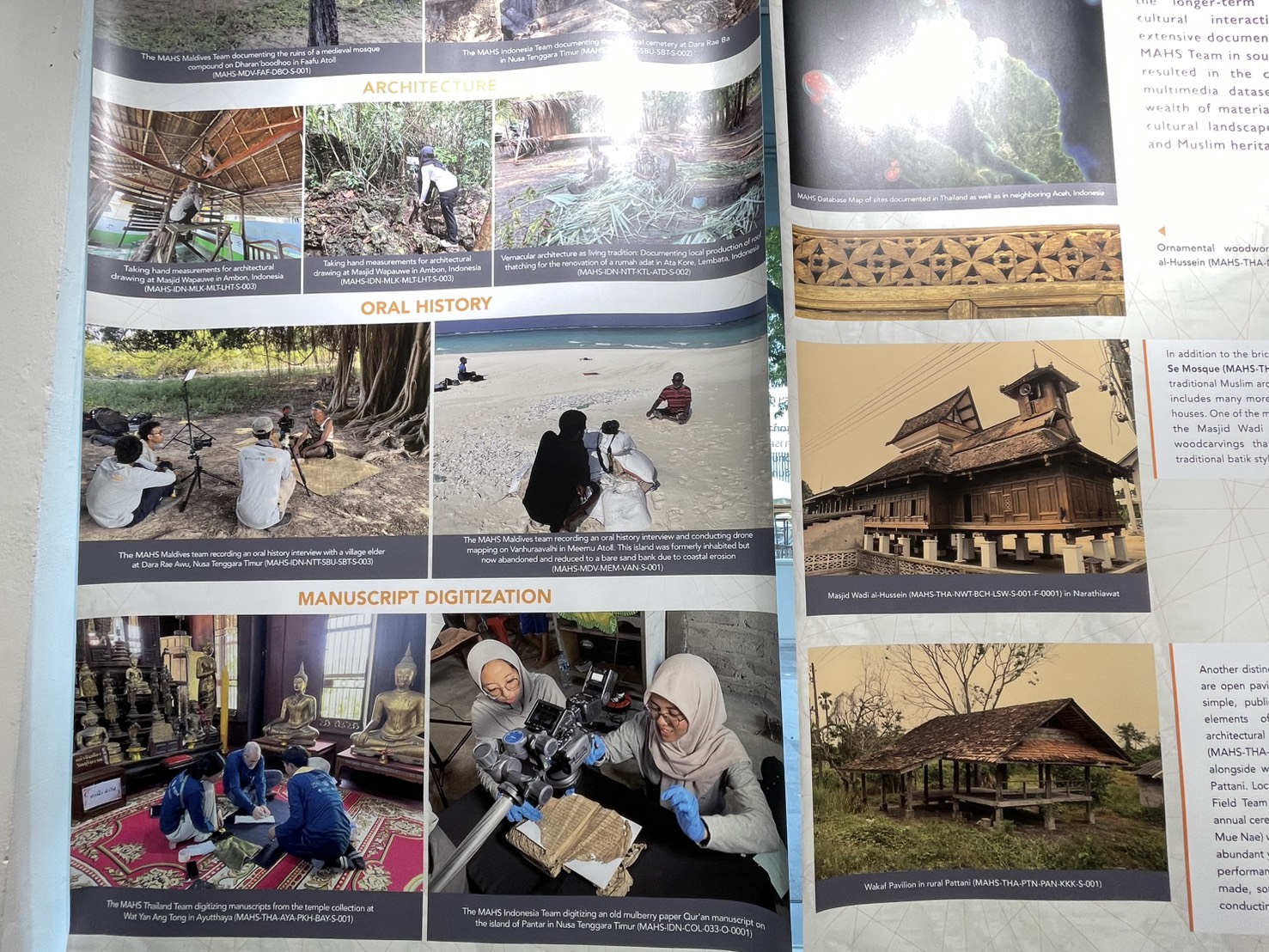 ในประเทศไทย MAHS ทำงานร่วมกับคณะสถาปัตยกรรมศาสตร์ มหาวิทยาลัยศิลปากร โดยทีมภาคสนามใช้ทั้งเทคโนโลยีล้ำสมัยและวิธีการสำรวจแบบดั้งเดิม เพื่อจัดทำบันทึกสำหรับฐานข้อมูลออนไลน์แบบเปิด ที่สะท้อนความหลากหลายและเอกลักษณ์ของวัฒนธรรมและประวัติศาสตร์ในภูมิภาค พร้อมจัดเก็บข้อมูลอย่างปลอดภัยเพื่อคนรุ่นหลัง